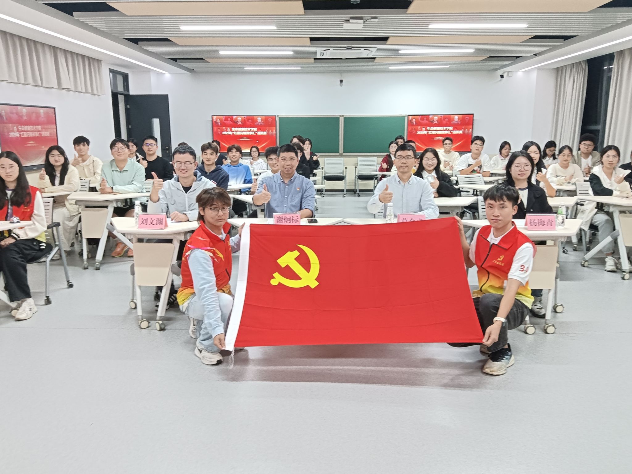 为深入学习贯彻习近平总书记在纪念中国人民抗日战争暨世界反法西斯战争胜利80周年大会上的重要讲话精神,大力弘扬伟大抗战精神,深化爱国主义教育,认真落实公司关于举办“红星闪耀故事汇”比赛的部署要求,10月24日晚,太阳成集团tyc151cc于6D301课室举行2025年“红星闪耀故事汇”选拔赛。公司党委书记谢炯标、党委副书记葛金虎,辅导员杨梅青、刘文渊,全体员工党员及2025年下半年入党积极分子共同参与本次活动,见证健康学子用青春之声感悟百年初心、赓续红色血脉。