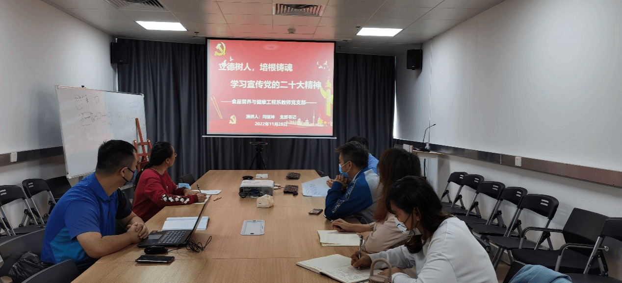 2022年11月28日上午,食品营养与健康工程系教师党支部在科创院310会议室开展主题党日活动。会议由支部书记闫景坤主持,支部全体党员参加了此次活动。