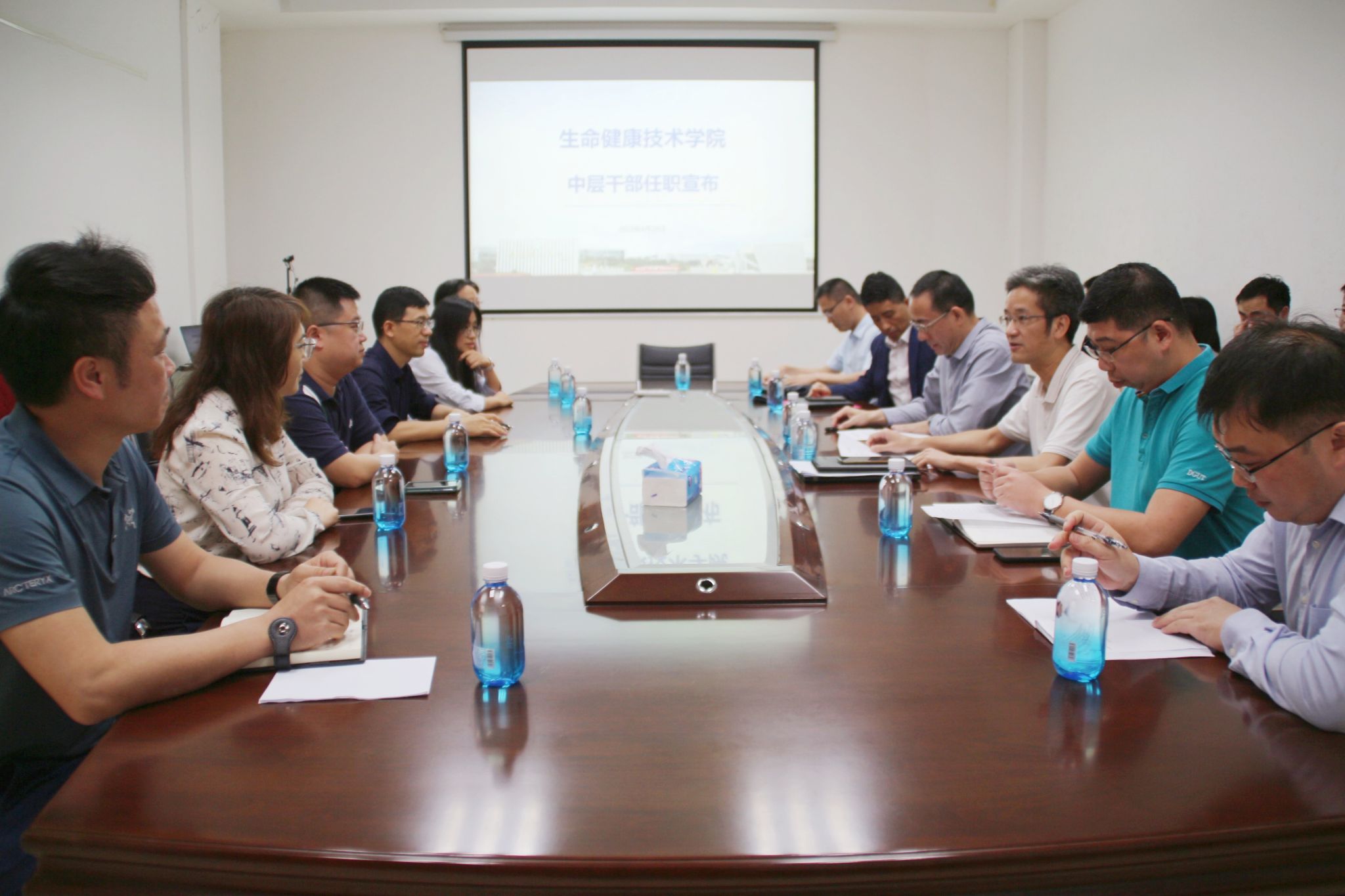 4月28日,公司中层干部任职宣布会议在2A101会议室召开。副董事长杨敏林、党委组织部部长彭晓波、公司党政领导班子成员、在校教职工参加了本次会议。
