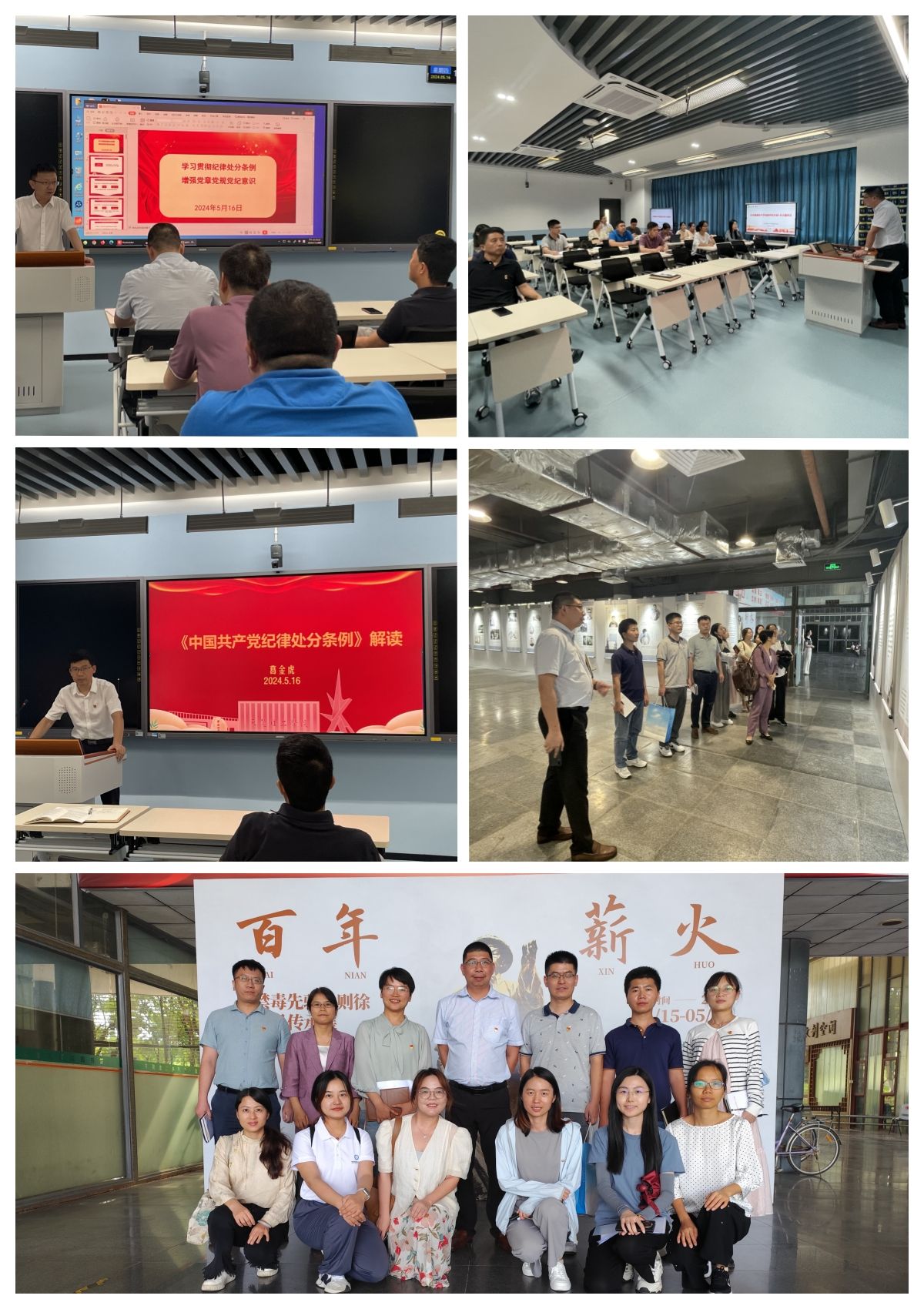 集团纪委委员、卓越工程师公司(创新创业公司)党委书记邢大立受邀为支部党员讲解新修订的《中国共产党纪律处分条例》(以下简称《条例》)。邢大立详细解读了《条例》修订的背景、意义和主要内容,强调了《条例》在党内监督中的重要作用,要求广大党员认真学习《条例》内容,严格遵守党的纪律,做到知敬畏、存戒惧、守底线。生命健康技术公司党委副书记葛金虎结合典型案例和公司实际,带领支部全体党员对《条例》进行了深入学习,就如何在实际工作中贯彻落实党的纪律要求进行了详细阐述。随后,全体党员观看了警示教育片,并前往图书馆参观“百年薪火—禁毒先驱林则徐家风传承展”。