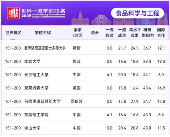 11月18日,高等教育评价专业机构软科正式发布2025“软科世界一流学科排名”。公司食品科学与工程学科表现亮眼,首次进入全球151-200名区间,较2024年的201-300名显著跃升。这一突破标志着公司团队建设迈上新台阶,国际学术影响力持续提升。