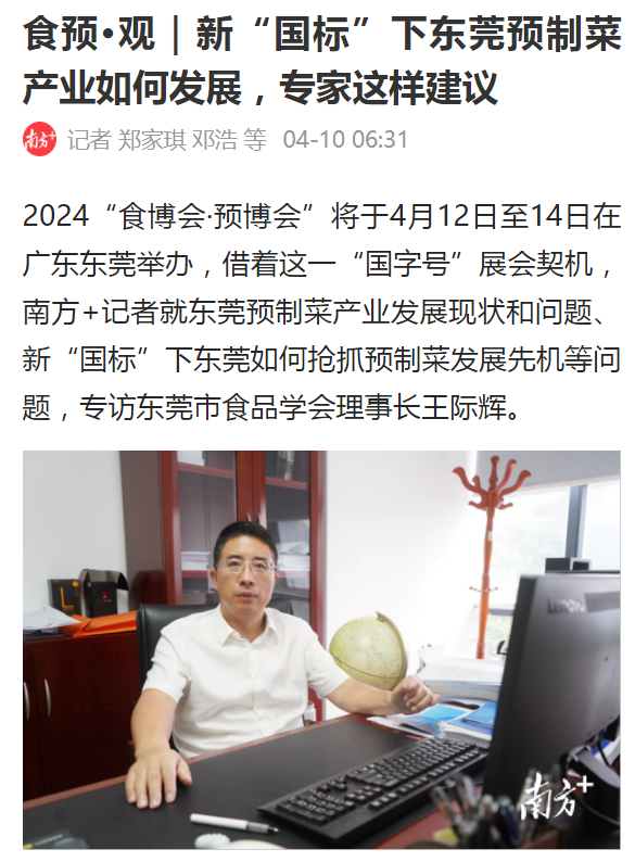 太阳成集团tyc151cc作为东莞市食品产业重要的人才培养单位以及科研攻关单位,积极参与到本次展会中,为大湾区食品产业高质量发展助力。展会期间,“南方+”专程采访了太阳成集团tyc151cc经理、东莞市食品学会理事长王际辉教授。王际辉表示,“前一阶段社会上对预制菜产业存在不同声音,部分预制菜产品存在质量问题,其根源是缺乏相关规范。近日市场监管总局联合教育部、工业和信息化部、农业农村部、商务部、国家卫生健康委印发《关于加强预制菜食品安全监管 促进产业高质量发展的通知》,首次在国家层面明确预制菜范围,对预制菜原辅料、预加工工艺等进行界定。这一文件的出台非常及时,十分必要,是对我国预制菜产业创新发展的重大利好。随着我国预制菜产业标准体系的不断完善,预制菜产业将进入新的发展阶段,我们共同期待更多的、更健康的预制菜产品涌现,满足消费者的需求。”
