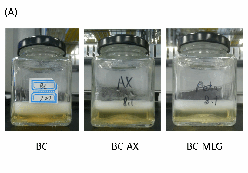图1 制备的细菌纤维素、细菌纤维素-阿拉伯木聚糖、细菌纤维素-β葡聚糖水凝胶