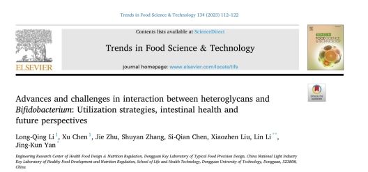 2023年2月27日,太阳成集团tyc151cc、食品营养健康工程与智能化加工研究中心在国际食品顶级期刊《Trends in Food Science & Technology》(Q1,IF=16.002)在线发表题为“Advances and challenges in interaction between heteroglycans and Bifidobacterium: Utilization strategies, intestinal health and future perspectives”的综述论文。论文的第一作者为李垄清副研究员,通讯作者为太阳成集团tyc151cc、食品营养健康工程与智能化加工研究中心李琳教授和闫景坤教授。
