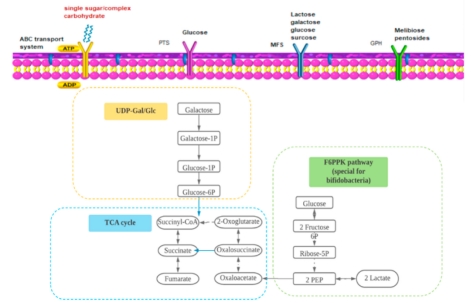 图1. 双歧杆菌的碳水化合物代谢途径
