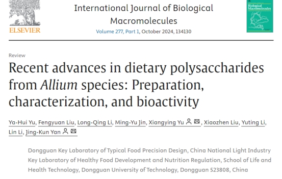 2024年7月23日,公司闫景坤教授团队于国际学术期刊《International Journal of Biological Macromolecules》(中科院JCR 1区)在线发表题为“Recent advances in dietary polysaccharides from Allium species: Preparation, characterization, and bioactivity”的综述文章。论文第一作者为于亚辉博士,通讯作者为闫景坤教授。