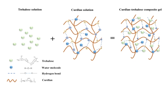 图2 可得然胶-海藻糖复合凝胶网状结构的形成机理