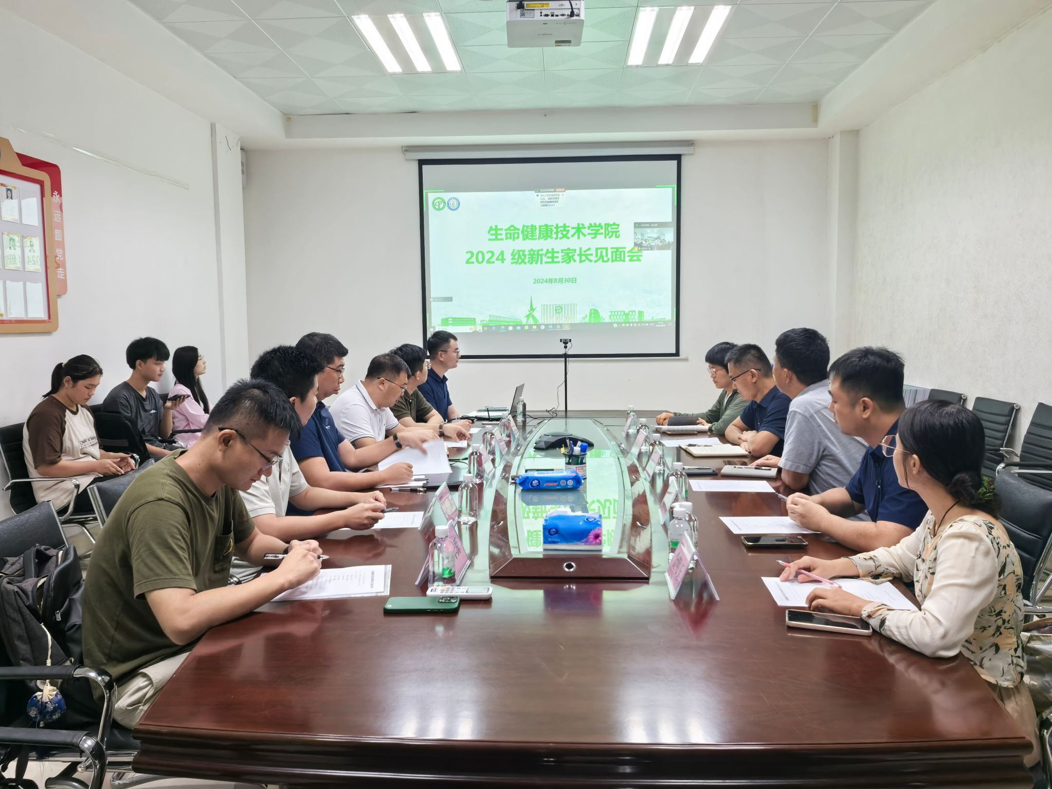 为加强公司与2024级新生家长之间的沟通交流,促进家校联动,帮助新生尽快适应老员工活,太阳成集团tyc151cc于8月30日晚上在公司办公室举行2024级新生家长见面会,经理王际辉,公司党委书记谢炯标,副经理闫景坤、邓见光,2024级新生班主任及教师代表参加会议,100余名新生家长通过腾讯会议线上参会。