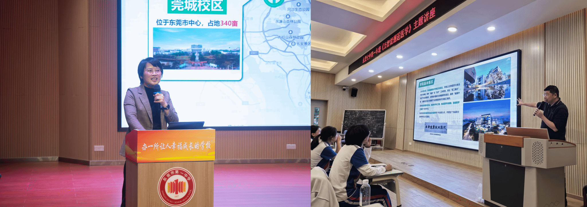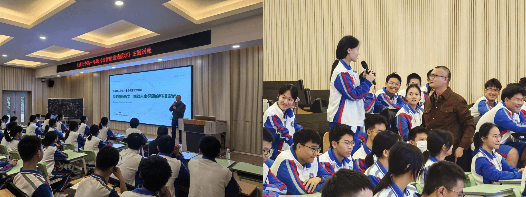12月4日和8日,生命健康技术公司党委书记谢炯标带队走进东莞市第一中学、东莞市第七高级中学,开展“送课进中学”活动。本次送课以《智能邂逅医学:解锁未来健康的科技密码》为主题,分别由沈晓燕、刘强两位教师讲授,通过前沿科普与互动交流,为两所中学的学子打开了一扇通往智能医学领域的探索之门。