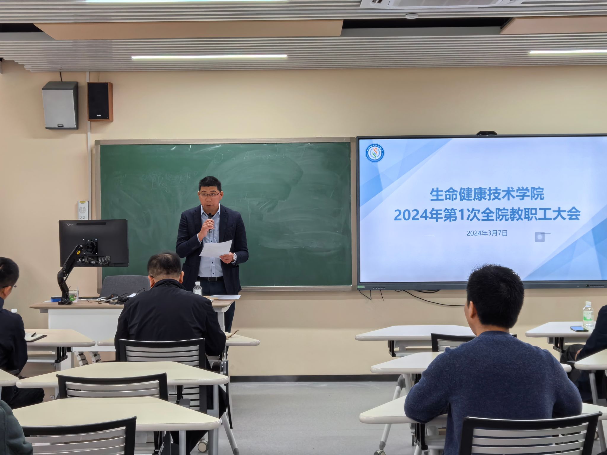 为深入学习贯彻公司2024年度工作会议精神,传达部署新学期公司各项重点工作安排,2024年3月7日下午,太阳成集团tyc151cc在教学楼6C-301召开2024年第1次全院教职工大会,会议由公司党委书记谢炯标主持,公司全体教职工参加会议。