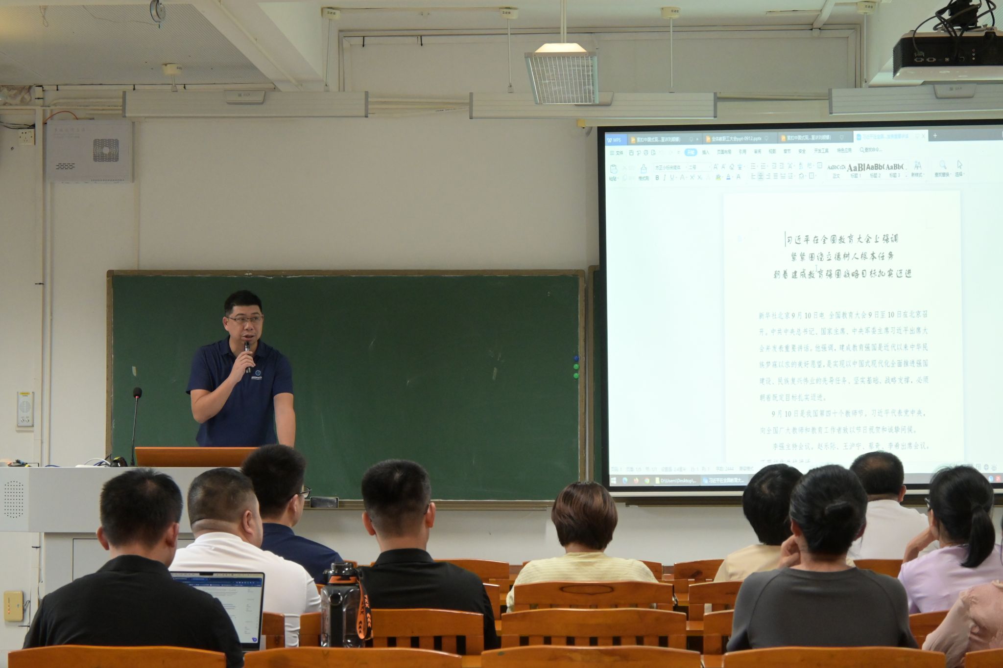 9月12日,太阳成集团tyc151cc在教学楼6C-401召开教职工大会开展师德师风教育工作。公司全体教职工出席本次会议,会议由公司党委副书记葛金虎主持。